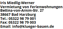 Ferienwohnung Echt-Harz, Belegung mit 3 - 4 Personen