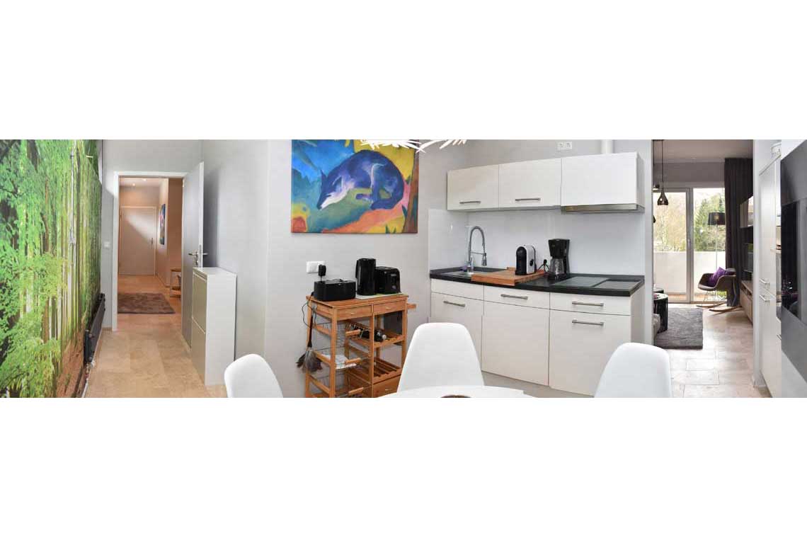 mit Cerankochfeld, Backofen und Geschirrspüler gestattet die komfortable Zubereitung der eigenen